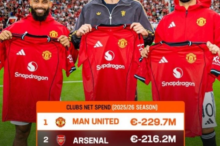 🤑夏窗净支出Top5:曼联&阿森纳破2亿!皇马第3英超4席无利物浦